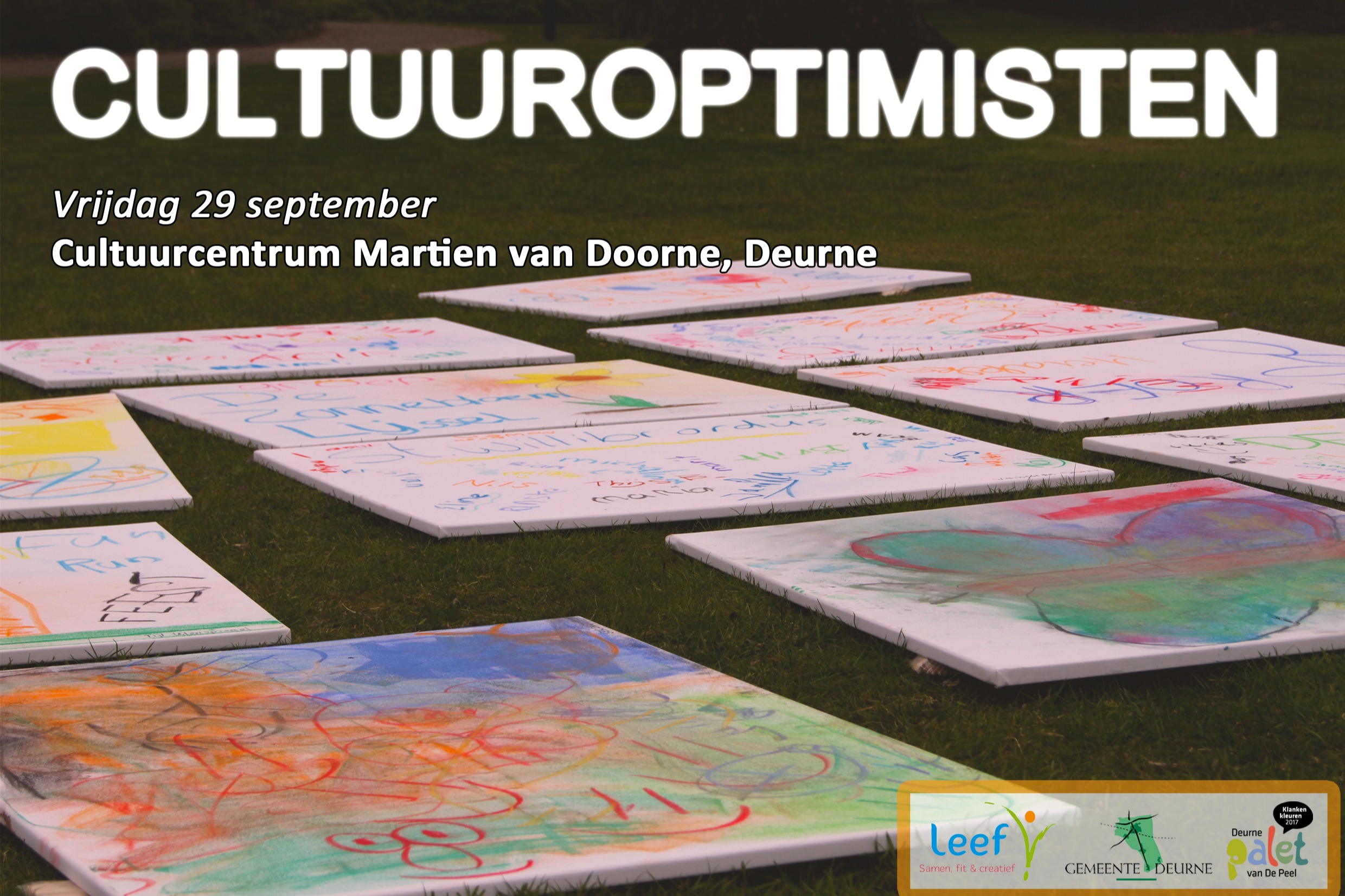 Leef Deurne organiseert, in samenwerking met de gemeente Deurne en Deurne Palet van de Peel, de bijeenkomst Cultuuroptimisten Deurne. Deze avond zijn alle culturele verenigingen/organisaties uit Deurne welkom. Het doel van deze avond is om elkaar (nog beter) te leren kennen en we gaan op een interactieve manier aan het werk voor een sterkere culturele leefomgeving in de gemeente Deurne. Hoe zorgen we er samen voor dat alle inwoners met kunst en cultuur in aanraking komen en hoe zien wij eigenlijk de culturele identiteit van Deurne?