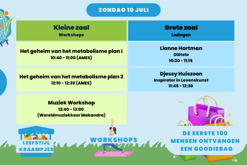 Er zullen een aantal kraampjes zijn van verschillende leefstijlaanbieders. Denk hierbij aan beweegaanbieders, kunst- en cultuuraanbieders en diëtisten. Deze partijen kunnen informatie geven over hun diensten en eventueel ook adviezen geven.