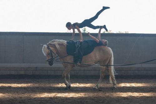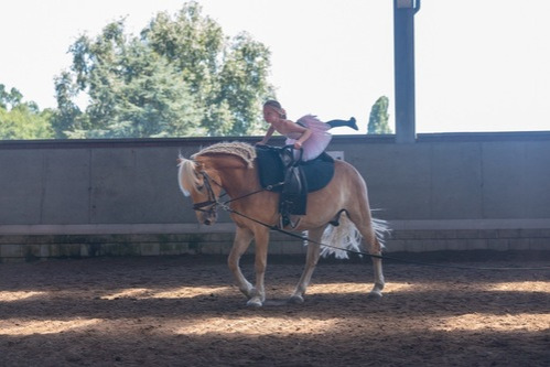 Voltigeren is een combinatie van oefeningen uit turnen, gymnastiek en acrobatiek, uitgevoerd op een paard waarbij de oefeningen in, op en met de bewegingen van het paard meegaan. Het paard wordt door de instructrice vastgehouden aan een longeerlijn. Er wordt om de instructrice een grote cirkel door het paard gemaakt in stap,draf of galop. De kosten bedragen €4,00 per serie van 2 lessen.